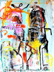 While their individual practices remain distinct, both artists share affinities with Art Brut through instinctive gesture, physical engagement, and a resistance to polished resolution. Their work is driven by intuitive mark-making and direct material experience.