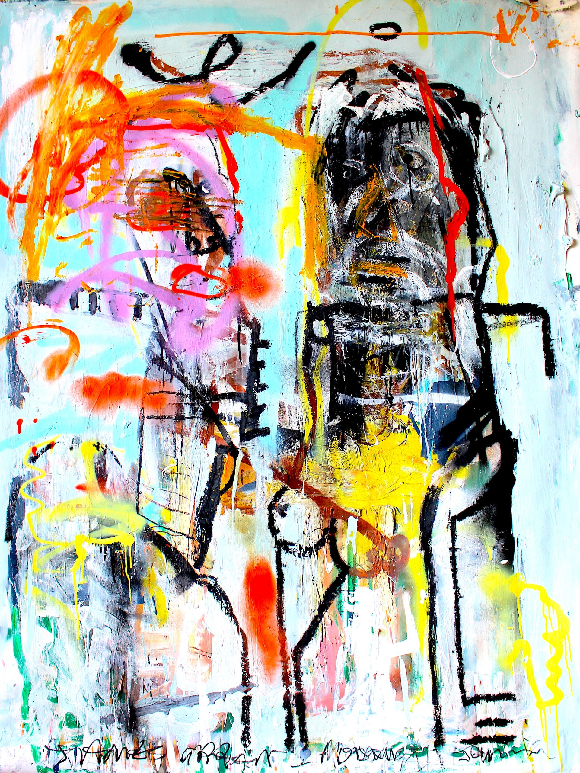 Positioned as points of convergence within the exhibition, the collaborative works offer insight into this shared process and demonstrate how two distinct approaches can operate on a single surface without hierarchy or pre-planning. The work is built through action rather than explanation, allowing meaning to emerge through shared intuition.