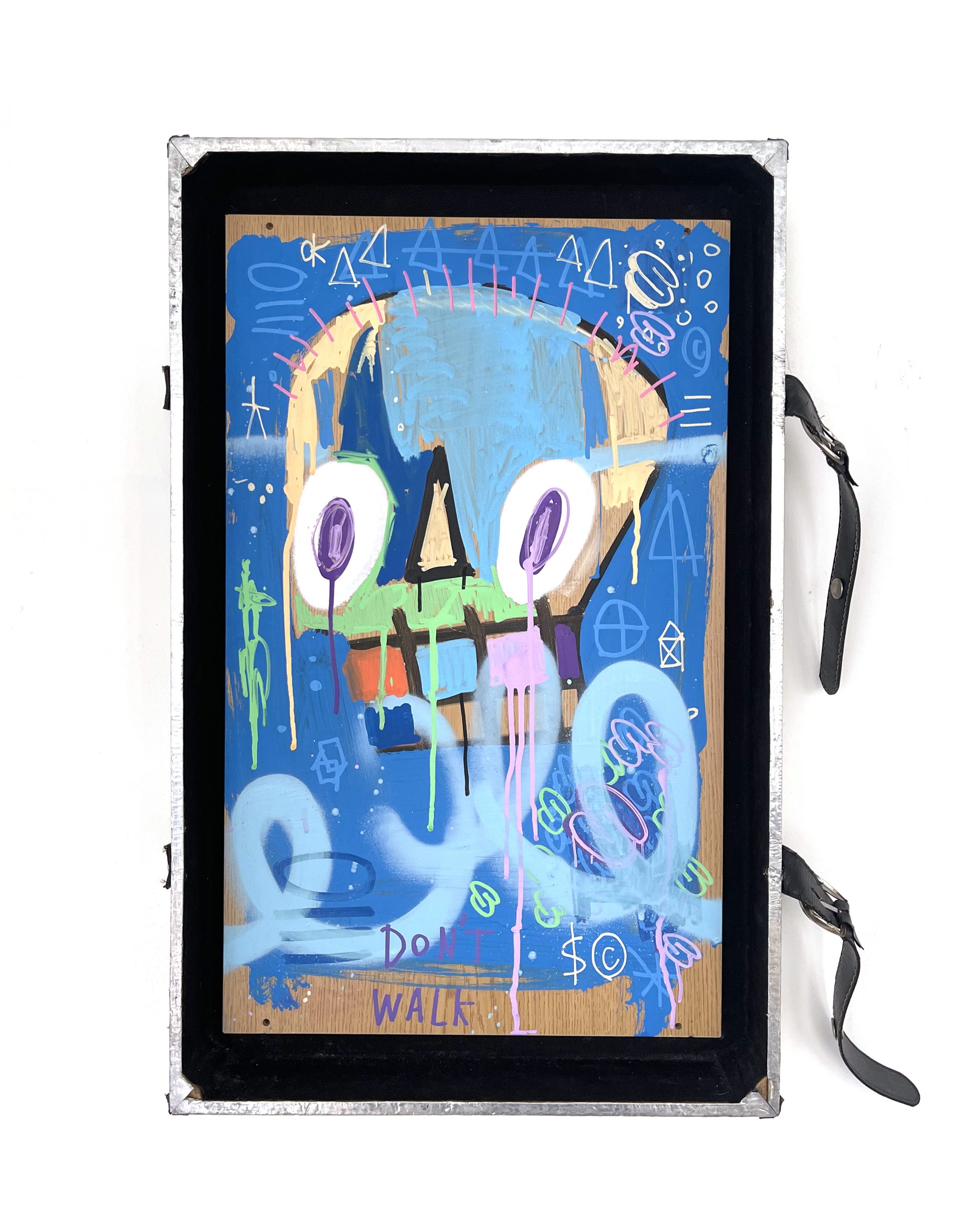Acrylic and Paint Marker on Found Wood, Housed in Aluminium Suitcase Lid