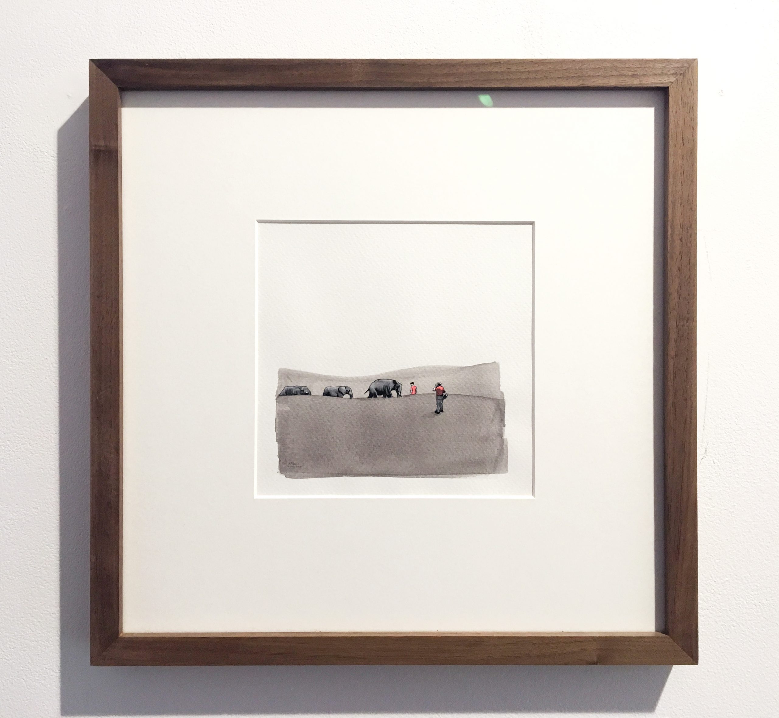Framed in a walnut frame in museum glass.
